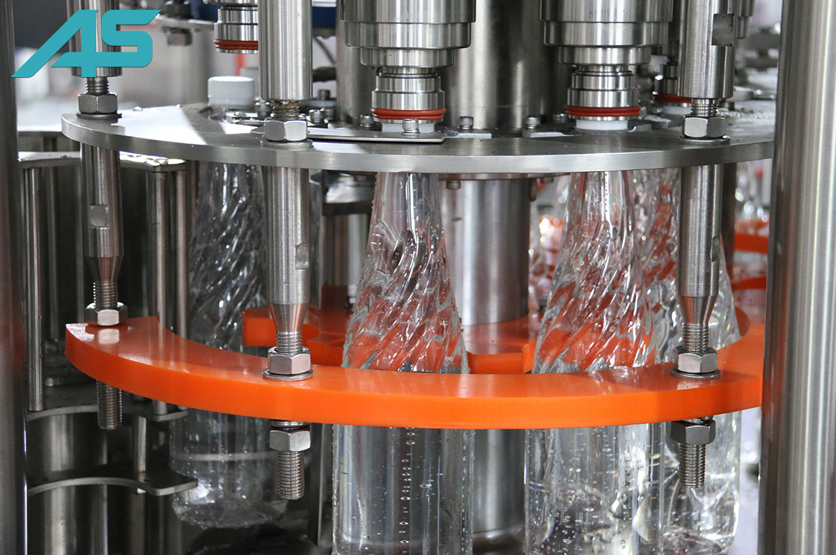 純凈水灌裝機屬于全自動灌裝機,主要用于聚脂瓶(PET瓶)裝水灌裝。
